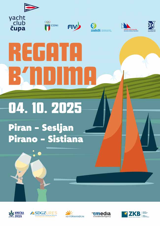 Regata B'ndima ( narečna beseda, ki pomeni trgatev na obeh straneh severnega Jadrana) 4 oktobra, 2025. Start ob 11 uri iz Pirana, Slovenija, cilj v Sesljanu, kjer bo zabava na plaži s kraškimi dobrotami.